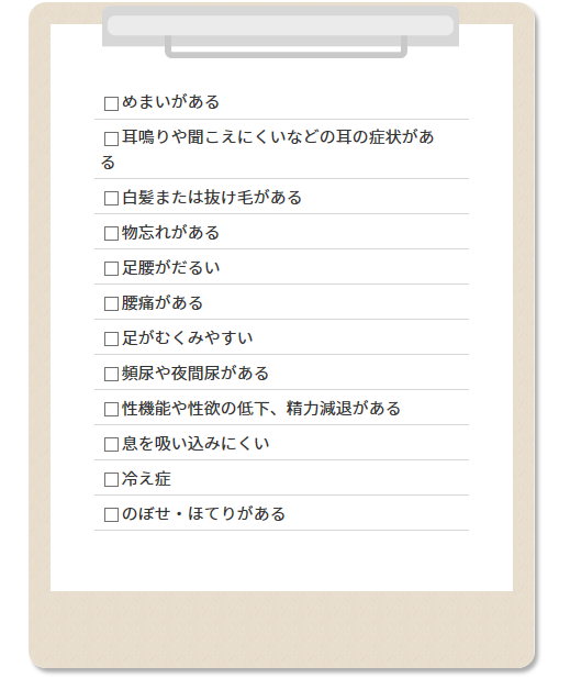 4個以上当てはまると、『腎』の働きが低下傾向にあるかもしれません。