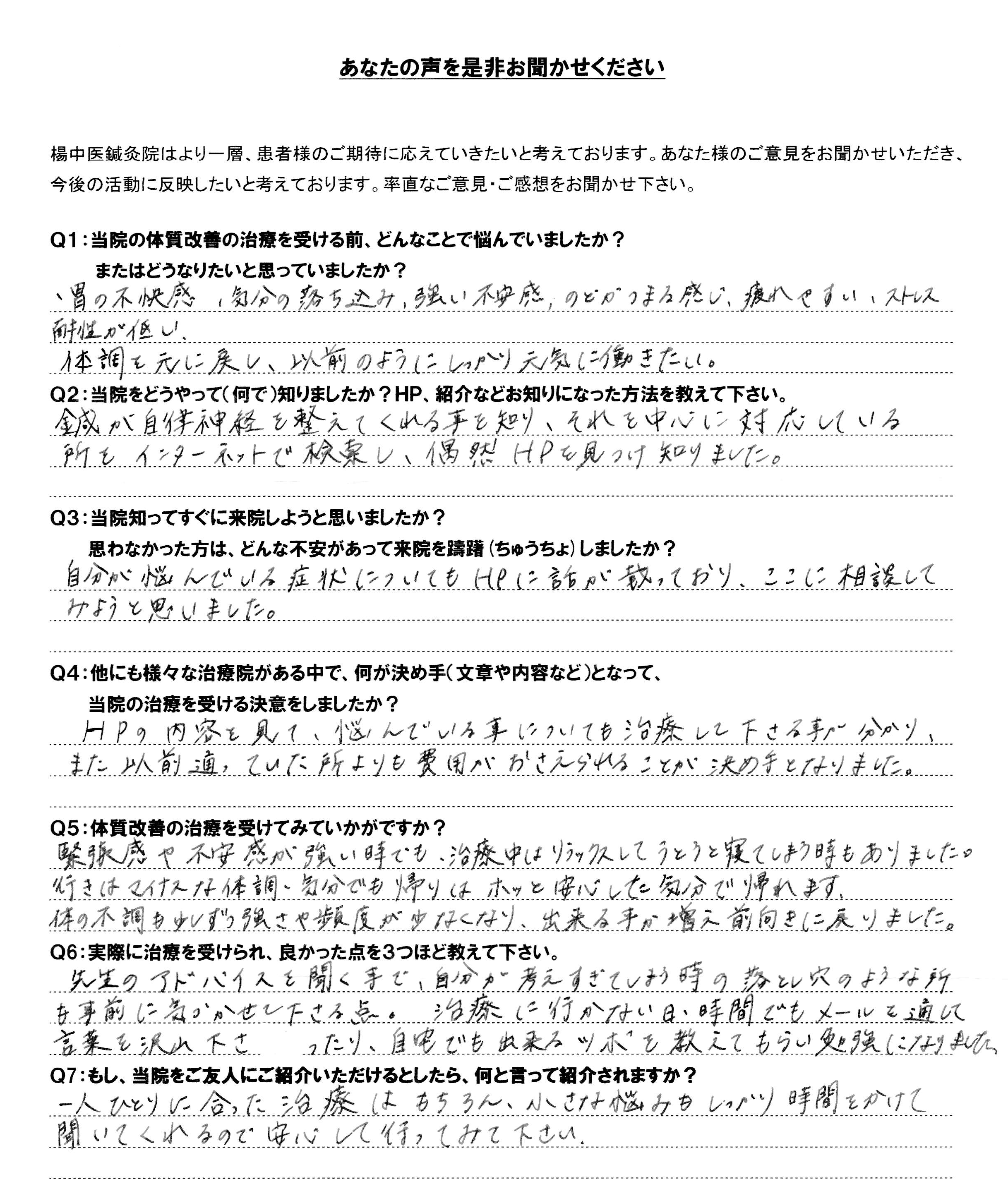 Q6:実際に治療を受けられ、良かった点を3つほど教えて下さい。