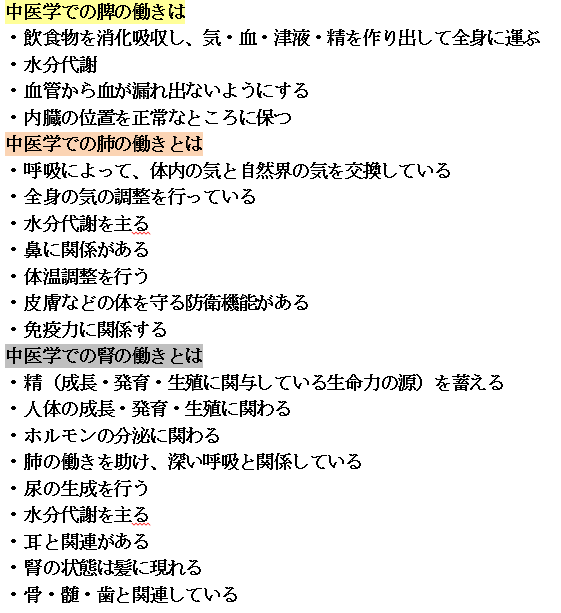 脾肺腎の働きは、写真を参考にしてみください。